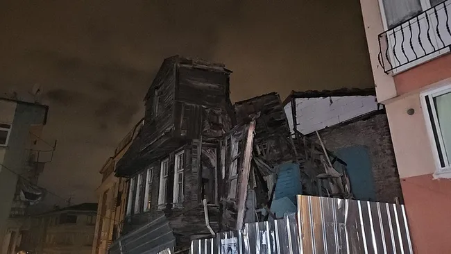 Beyoğlu Keçeci Piri Mahallesi Şeritçi Sokak’ta ise riskli yapı olması gerekçesi ile mühürlenen ahşap bina yine lodos ve yağmurun etkisiyle kısmen çöktü. İkinci katı çöken ve kısmen eğilen metruk bina çevredeki diğer binalara zarar vermezken ihbar üzerine olay yerine gelen itfaiye ve belediye ekipleri sokakta güvenlik önlemi aldı.